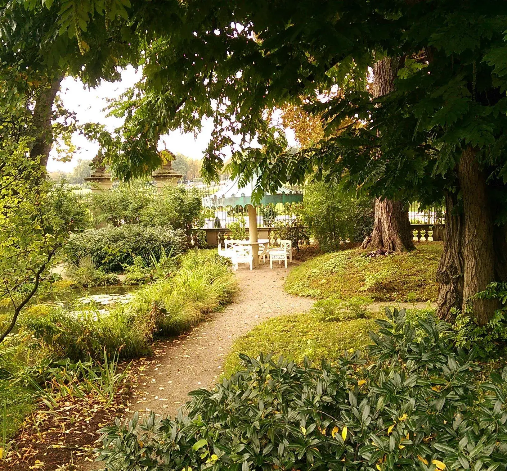 In 1798, Friedrich I, who would later become king, ordered the redesign of the long-neglected gardens. It had not been updated to modern tastes for a long time. The south garden was now simpler, with large spaces and a canal at its center, which is no longer present. He also commissioned two small gardens in the English style for himself and his wife, the English princess, Charlotte Mathilde. The Friedrich garden and the Mathilde garden, to the right and left of the new central building, were designed as private hideaways that could be accessed directly from either of their apartments.